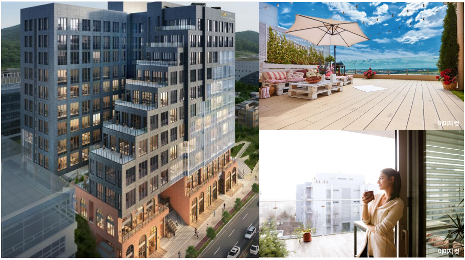 환승센터, 행정타운, 체육공원 이용객 및 오피스 고정수요 관공서 직장인 주거수요 확보 - 테라스 특화 설계