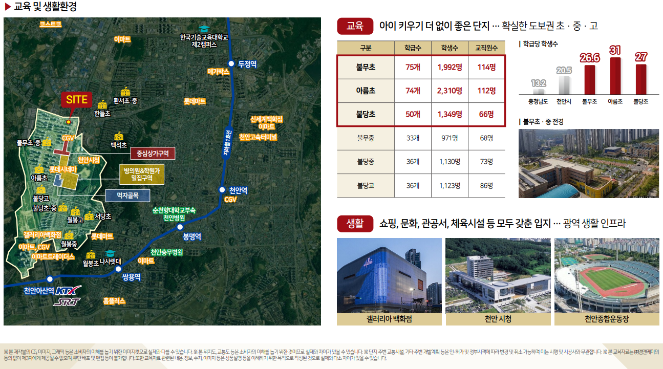 천안시 대표 주거단지이며, 문화시설과 생활편의시설을 한걸음에 누리는 생활특급인프라